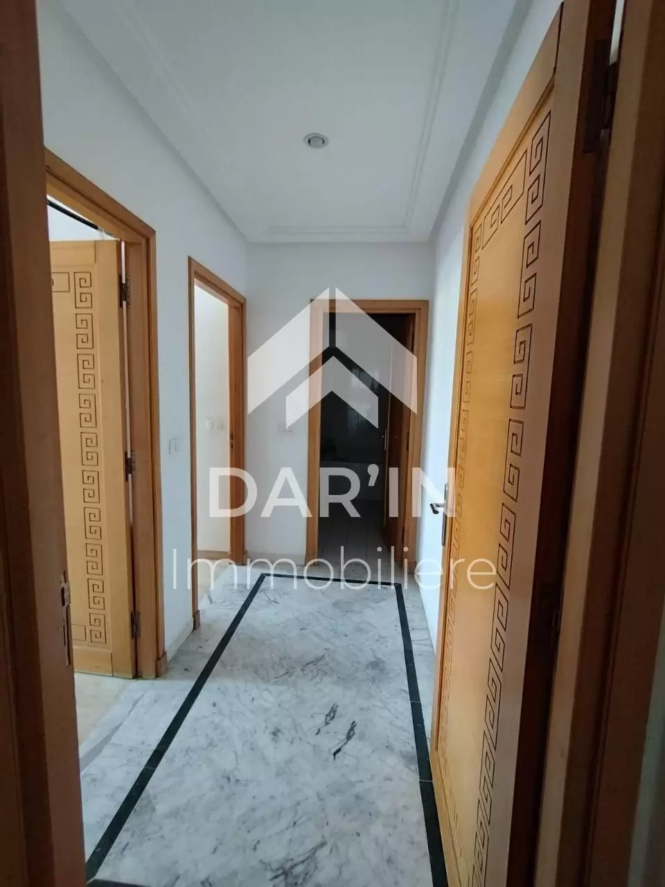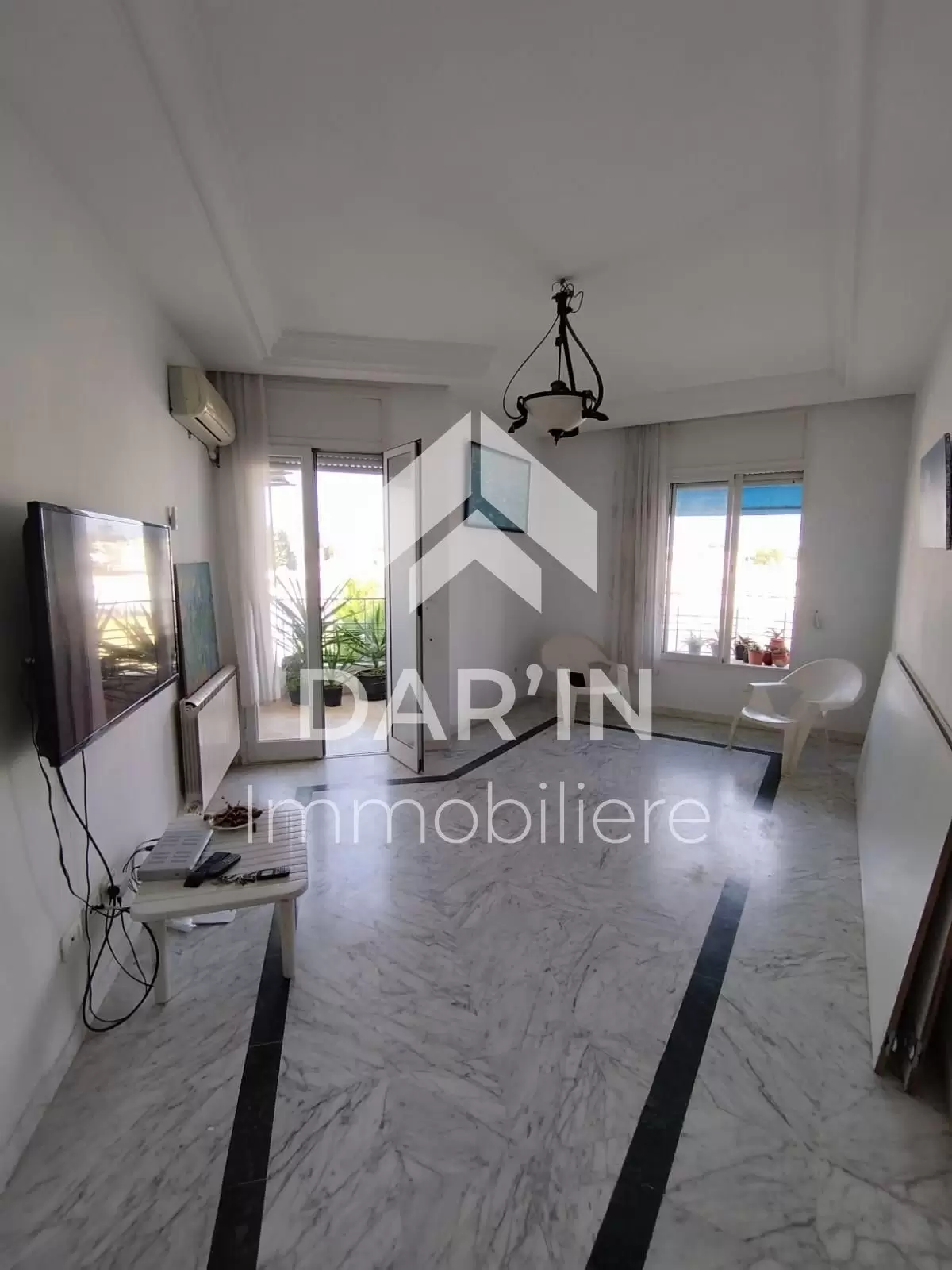 Dar'In immobiliére vous propose à la location un appartement S+2 au deuxième étage situé à la Marsa composé comme suit: Salon spacieux avec balcon Deux chambres à coucher dont une avec dressing Cuisine équipé avec séchoir Salle d'eau pour invités Salle de bain avec baignoire