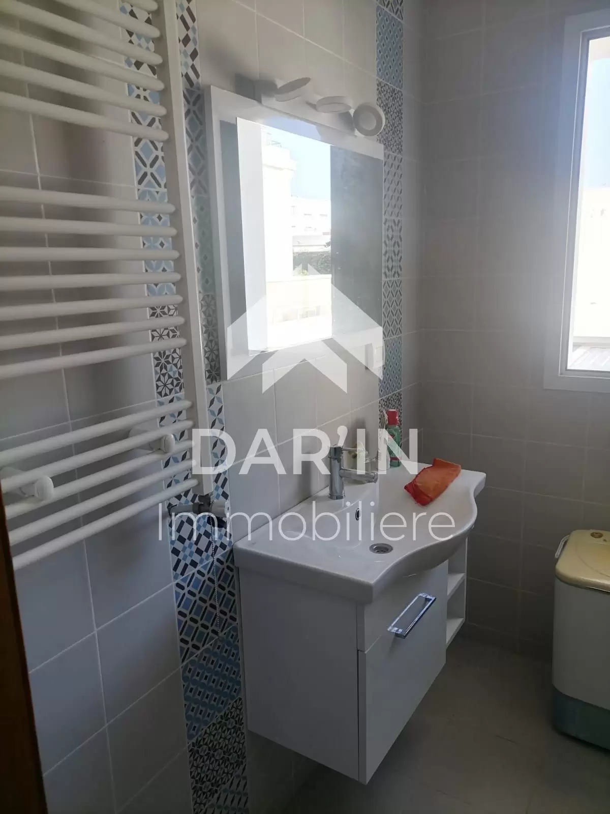 dar in immobilier vous propose un appartement haut standing s+2 a sidi abedl aziz située au 2eme et dernier étage se compose comme suite : salon avec balcon deux chambres avec dressing cuisine équipée avec séchoir salle d'eau avec cabine de douche