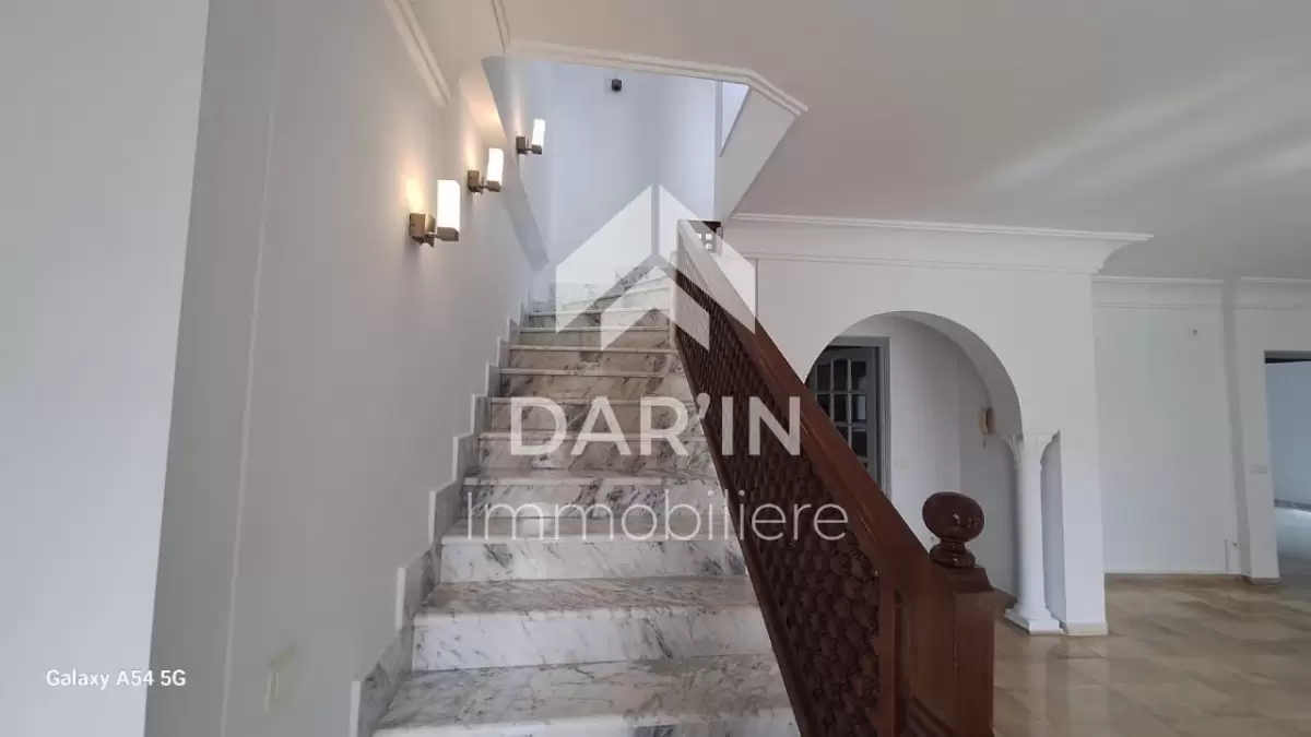 Dar'In immobilière vous propose à la location un duplex indépendant S+4 avec garage situé à la marsa cité des juges composé comme suit :un grand salon ,un séjour cuisine équipé ,3chambres à coucher avec dressing , une salle de bain avec baignoire, ,salle d'eau avec douche ,terrasse ,garage