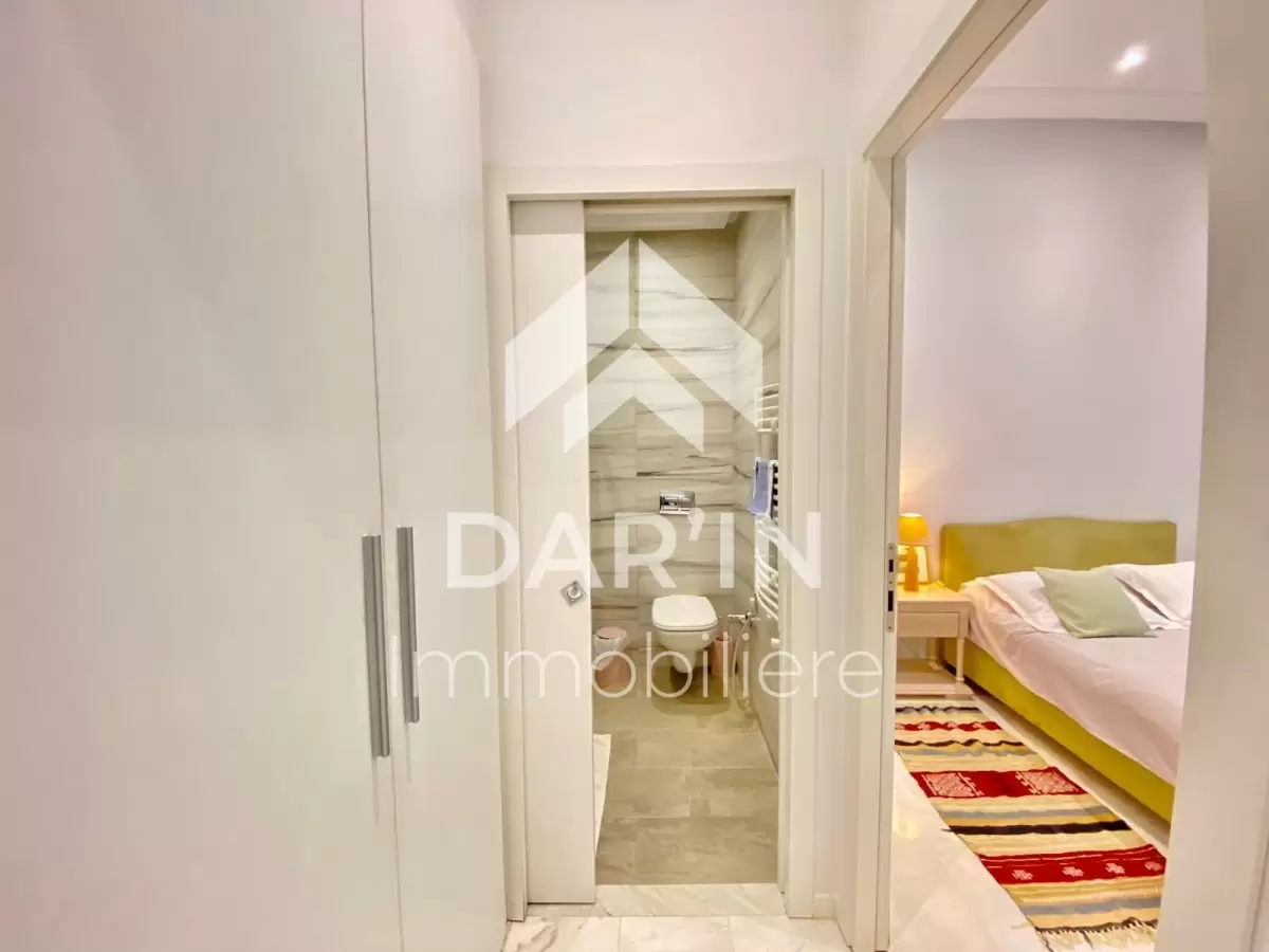Dar'in immobilière vous propose en location un appartement dans une résidence gardée à Marsa ville composé comme suit: Salon avec cuisine ouverte sur le salon, une chambre à coucher avec dressing, une salle d'eau douche.