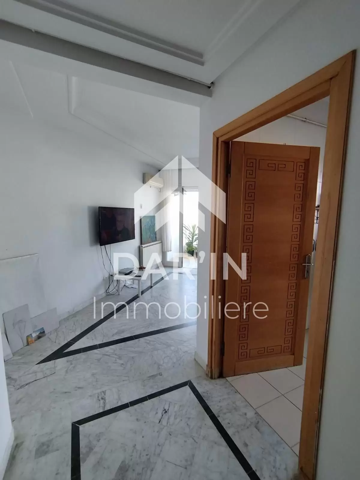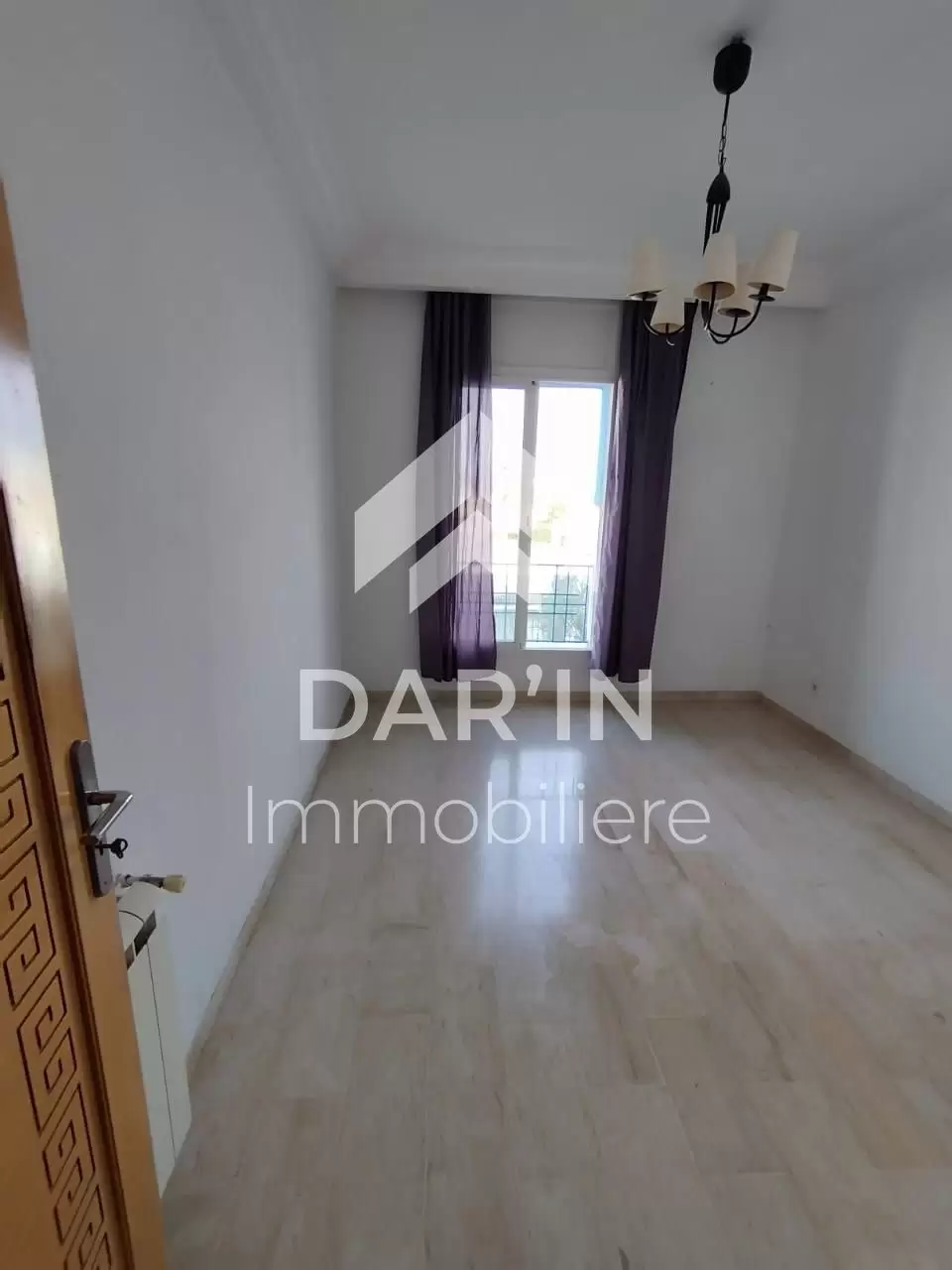 Dar'In immobiliére vous propose à la location un appartement S+2 au deuxième étage situé à la Marsa composé comme suit: Salon spacieux avec balcon Deux chambres à coucher dont une avec dressing Cuisine équipé avec séchoir Salle d'eau pour invités Salle de bain avec baignoire