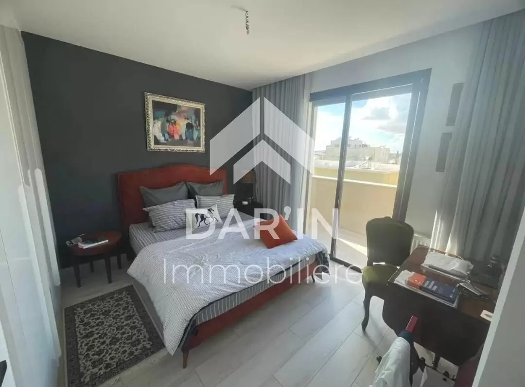 Situé au deuxième et au dernier étage d'une résidence avec ascenseur à La Marsa, elle se distingue par son emplacement accessible sur le GP9. À l'entrée, un hall désert la pièce de vie. Elle permet d'agencer aisément un salon et une salle à manger. La cuisine est agencée par les éléments de rangements et entièrement équipée par tous les ustensiles nécessaires à la vie quotidienne. Elle est complétée par un séchoir exploitable. Le compartiment nuit se compose de deux chambres à coucher avec dressing et balcon partagé entre les deux. Elles se partagent une salle de douche commune. L'appartement est équipé d'un chauffage central et d’une climatisation par split système. Une place de parking est disponible au sous-sol pour les futures propriétaires.
